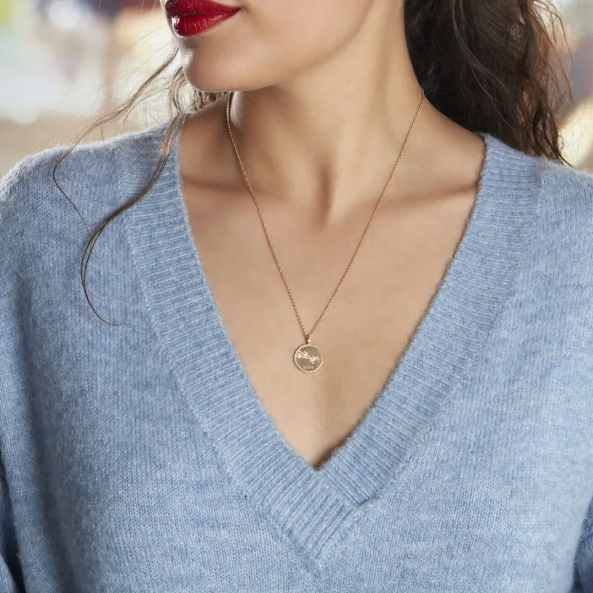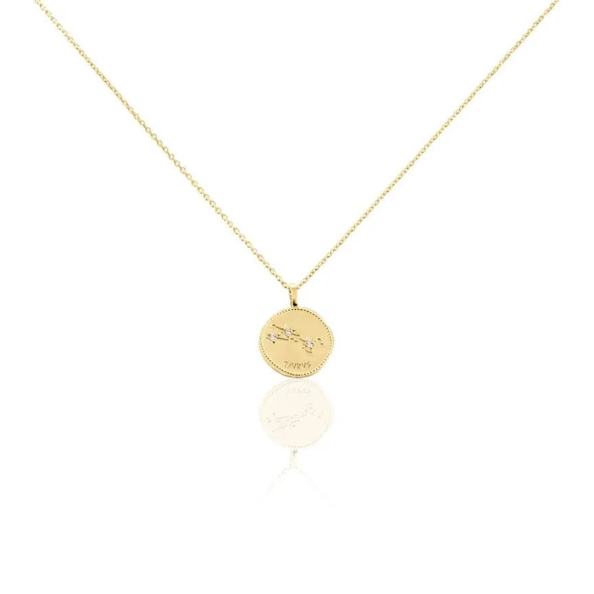 Collier Plaqué Or Jaune Pastille Mate Signe Astrologique Taureau Oxydes De Zirconium Chaine Forcat 50cm