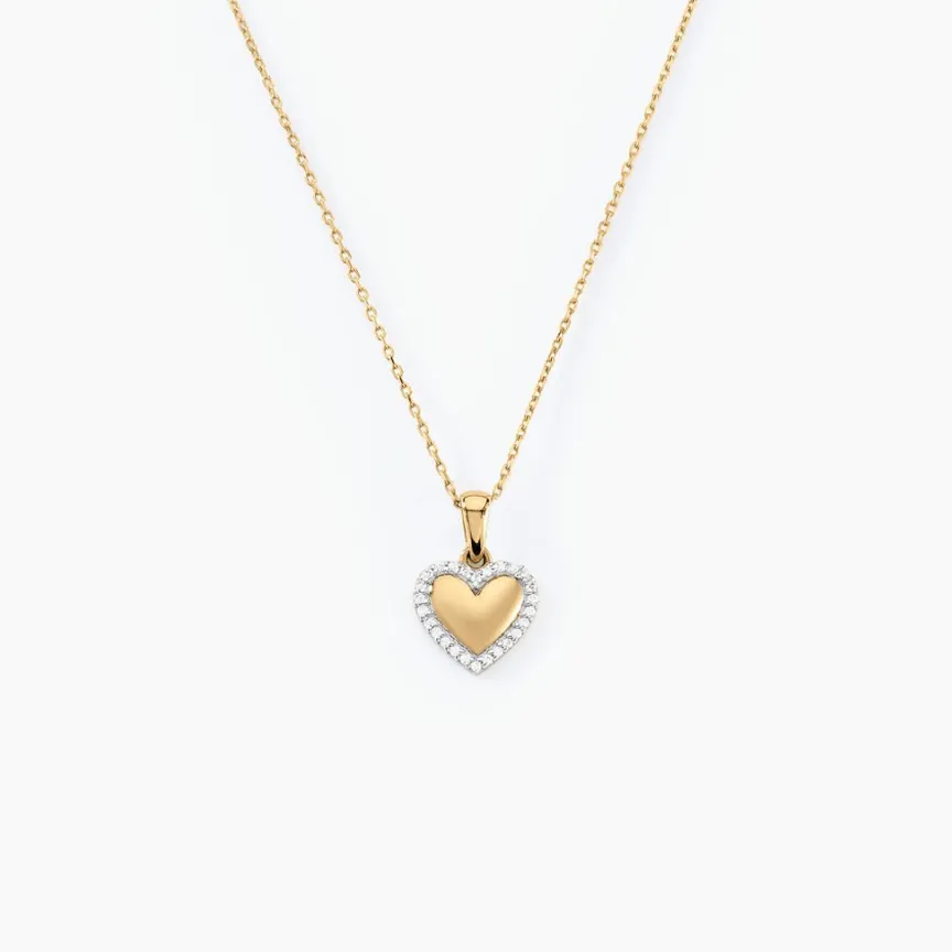 Collier Or Jaune 375/1000 C艙ur Pavage Oxyde De Zirconium Maille Forcat 40+2cm