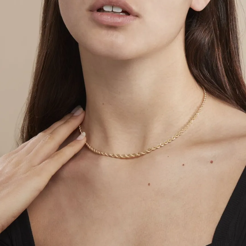 Collier Or Jaune 375/1000 Chute Maille Corde Largeur De 2.1mm A 3.8mm 42cm