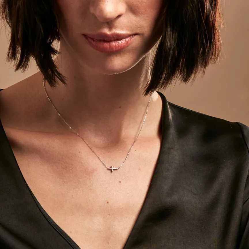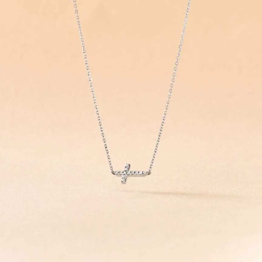 Collier Or Blanc 375/1000 Croix Oxydes De Zirconium Micro Serti Maille Forçat 42cm