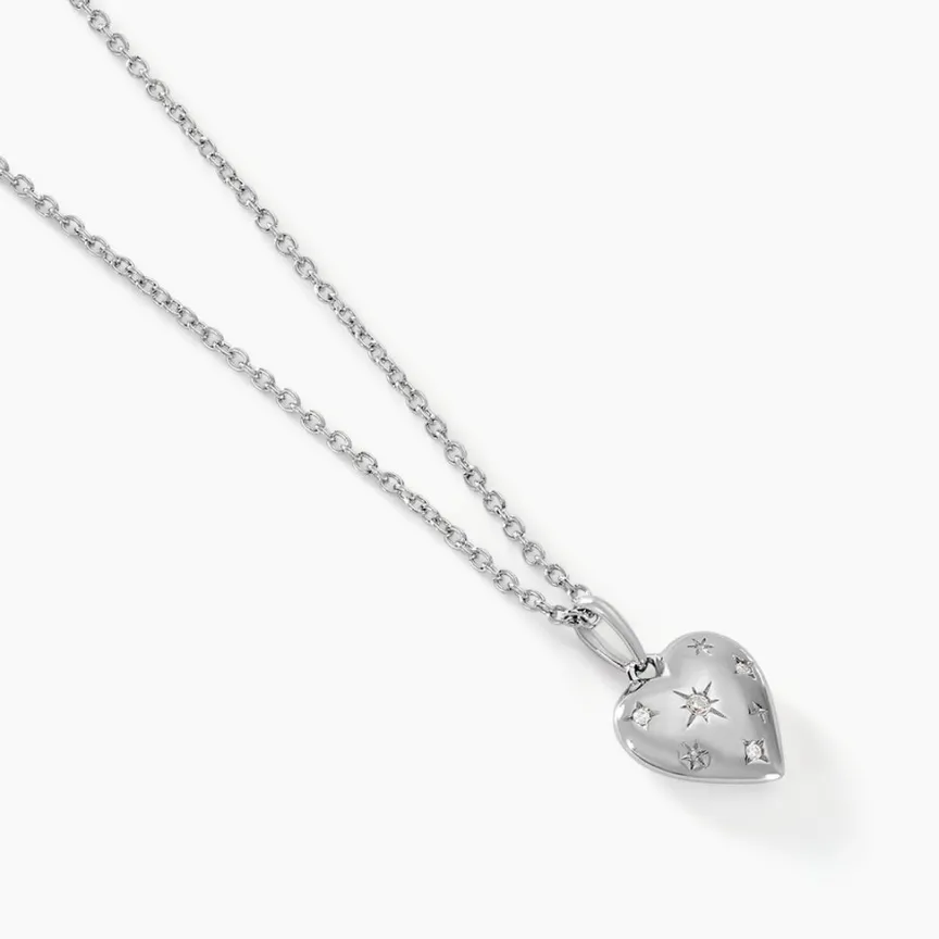 Collier Argent Blanc 925/1000 C艙ur Et Motifs étoiles Oxydes De Zirconium Maille Forçat 42+3cm