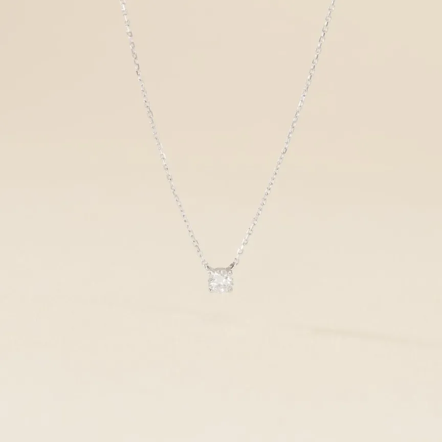 Collier Or Blanc 750/1000 Solitaire Diamant Synthétique 0.20cts Belière Fixe Maille Forçat 40+5cm