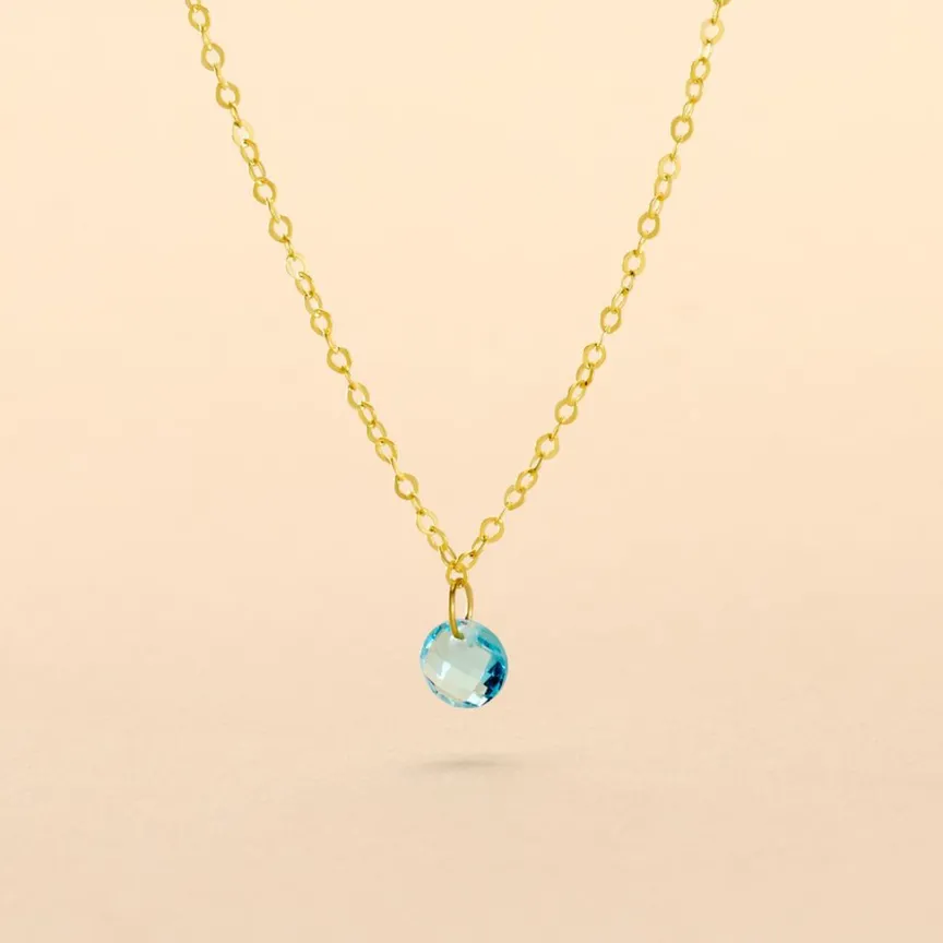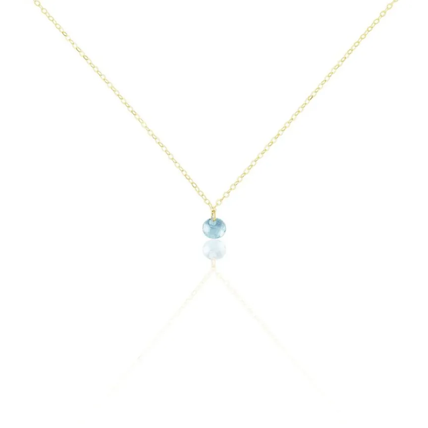Collier Or Jaune 375/1000 Pampille Oxyde De Zirconium Bleu Maille Forcat 38/40cm