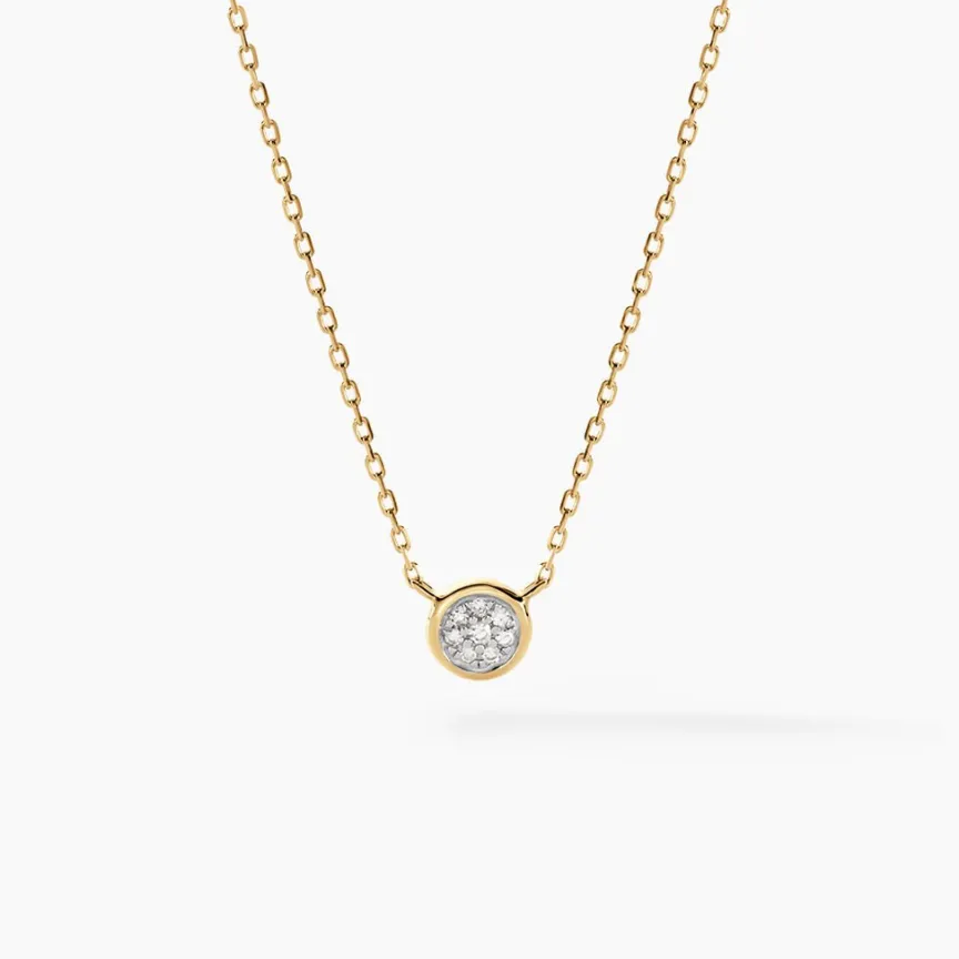 Collier Or Jaune 375/1000 Pastille Pavage Diamants 0.018cts 42cm