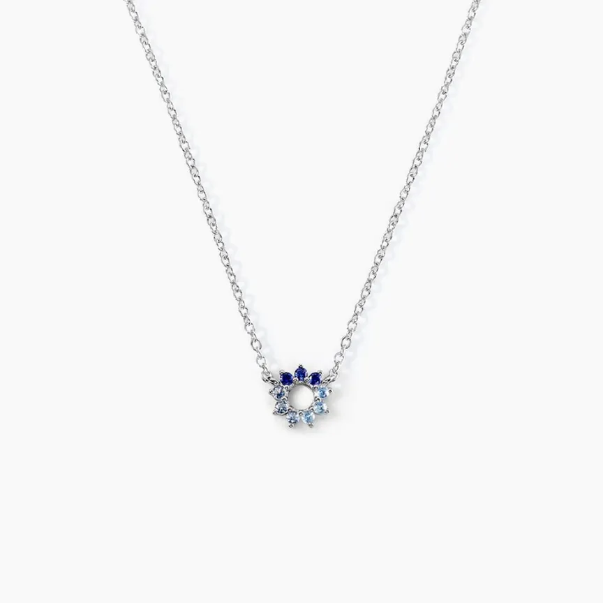 Collier Argent 925/1000 pavel Fleur Camaieu Bleu Serti Griffes Oxydes De Zirconium Maille Forçat 45cm