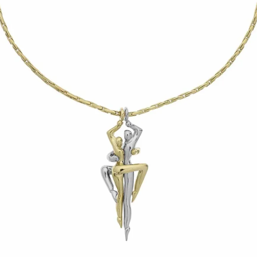 Collier Laiton Bicolore Personnages Entrelaces 45cm