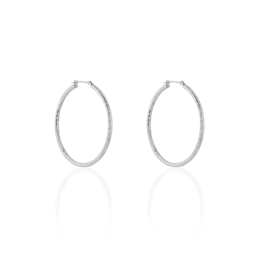 Créoles Or Blanc 375/1000 Fil Rond Effet Diamanté Largeur 2mm Diamètre 35mm