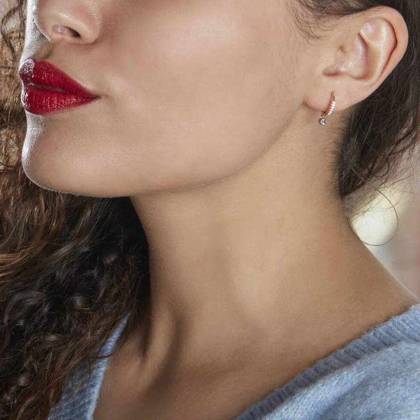 Creoles Plaque Or Jaune Pampilles Pierres Bleues Et Pavage Oxydes De Zirconium Diametre 10mm