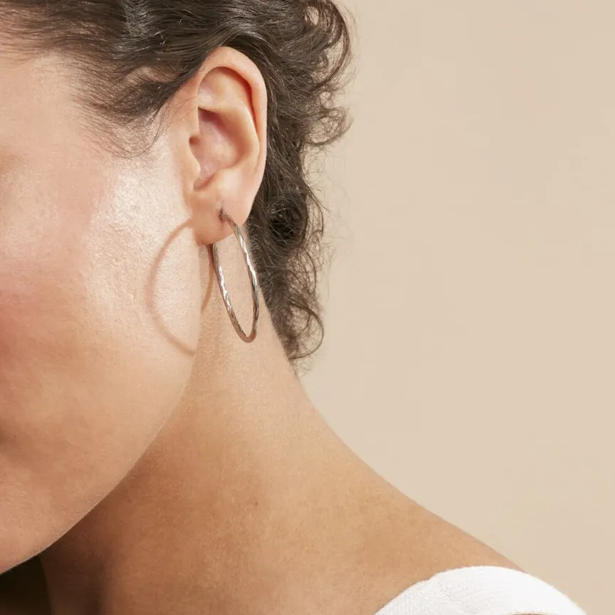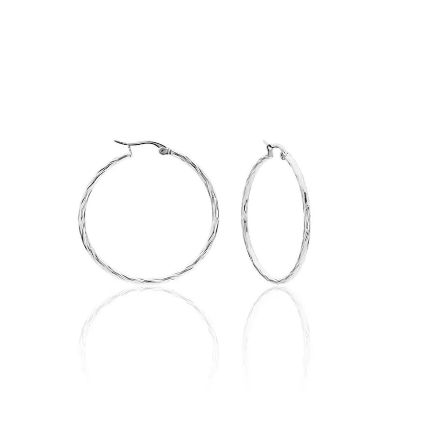 Créoles Acier Blanc Effet Strié Diamètre 40mm