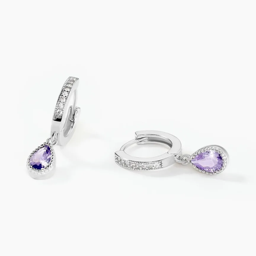 Créoles Argent Blanc 925/1000 Goutte Oxyde De Zirconium Lavande Serti Clos Pavage Oxydes 12mm
