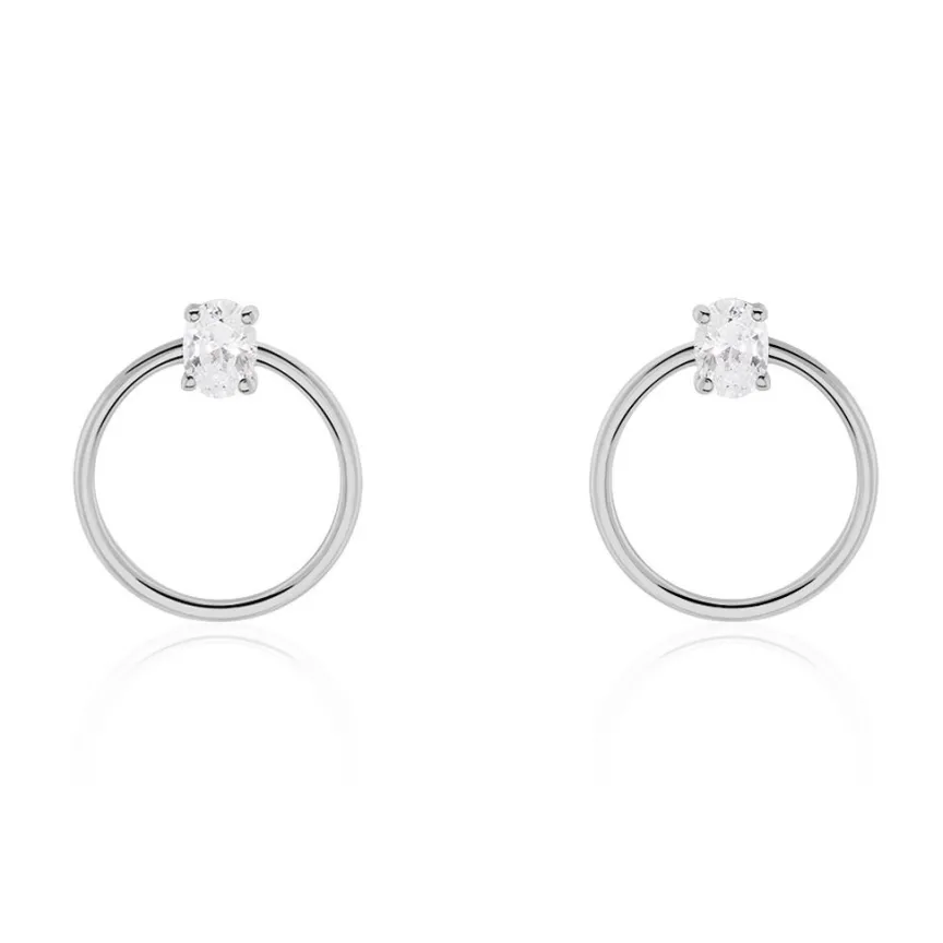 Créoles Or Blanc 375/1000 Ovale Oxydes De Zirconium Serti Griffes