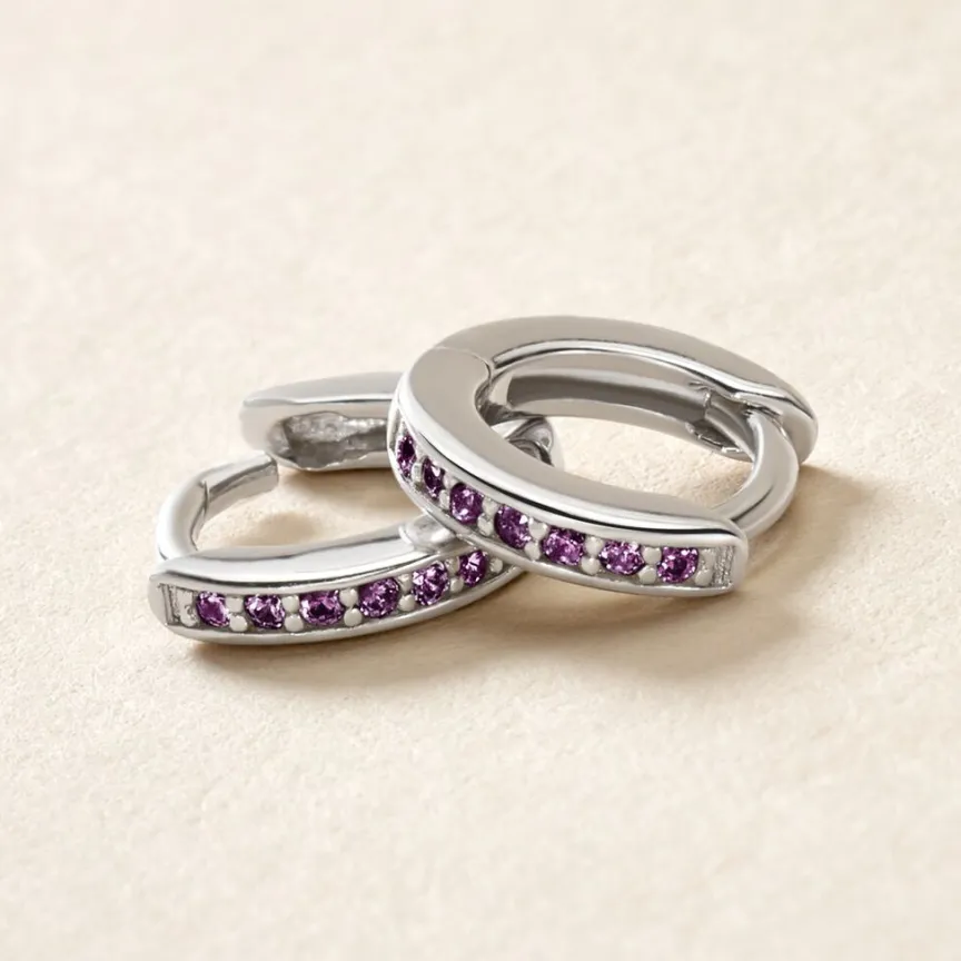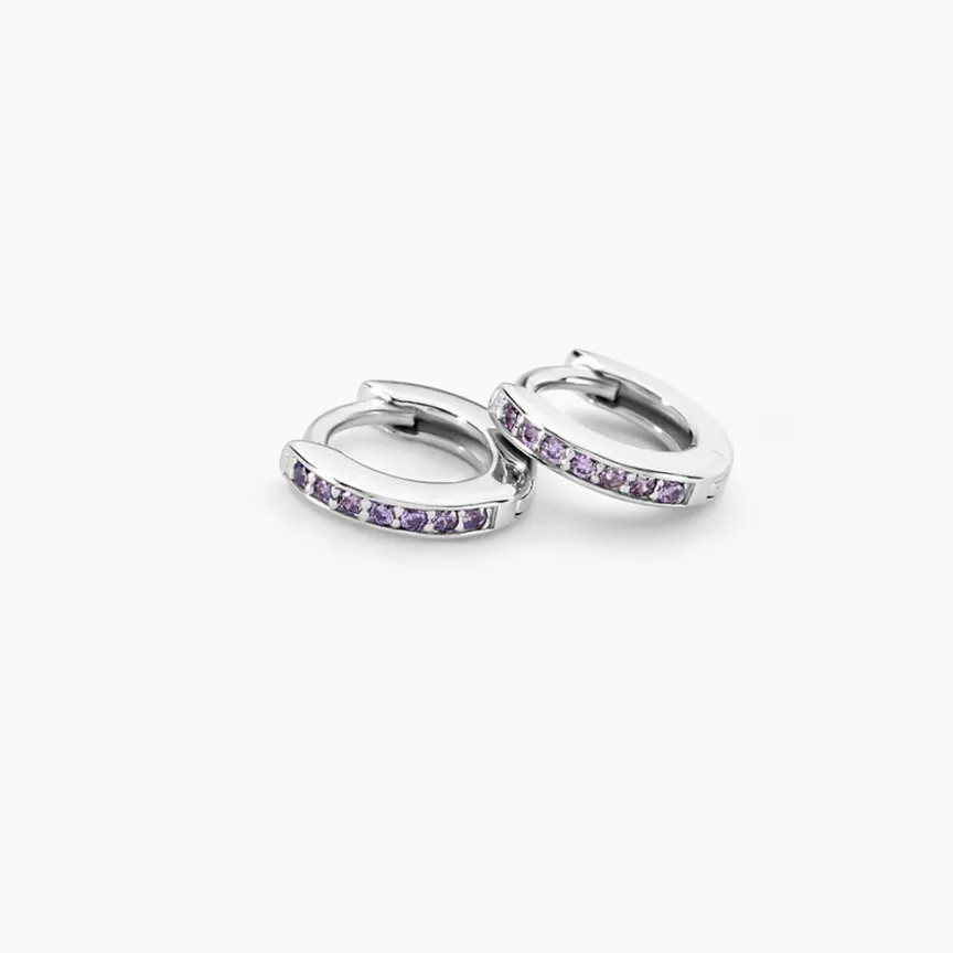 Créoles Argent Rose 925/1000 Oxydes De Zirconium Violets 7mm