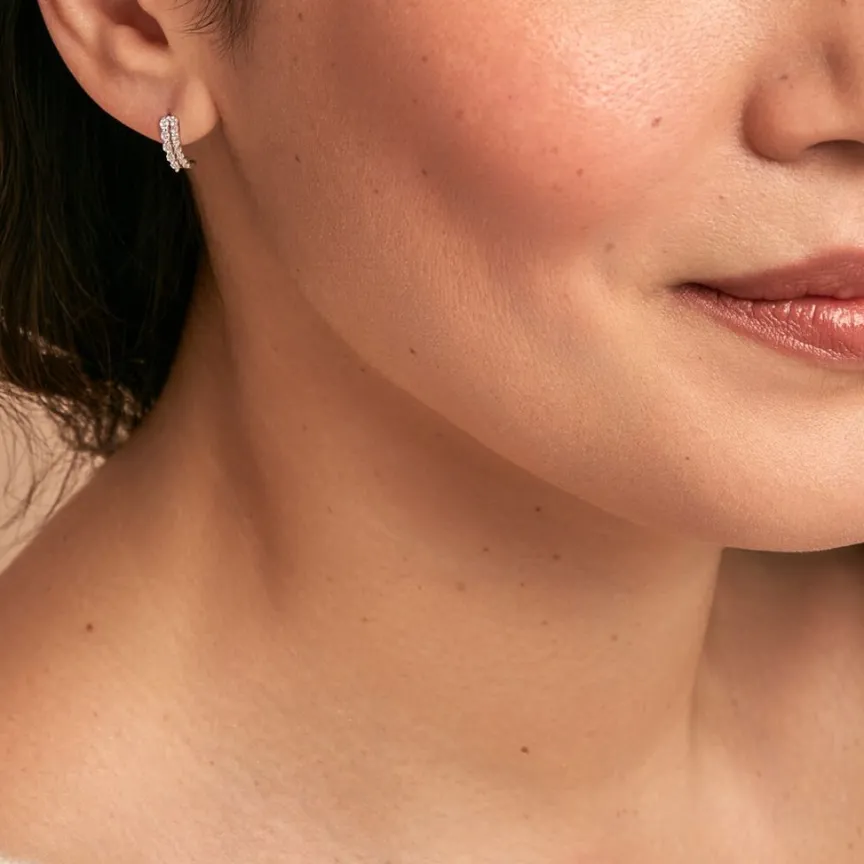 Demi Creoles Or Blanc 375/1000 2 Rangs Oxyde De Zirconium Serti Pavage