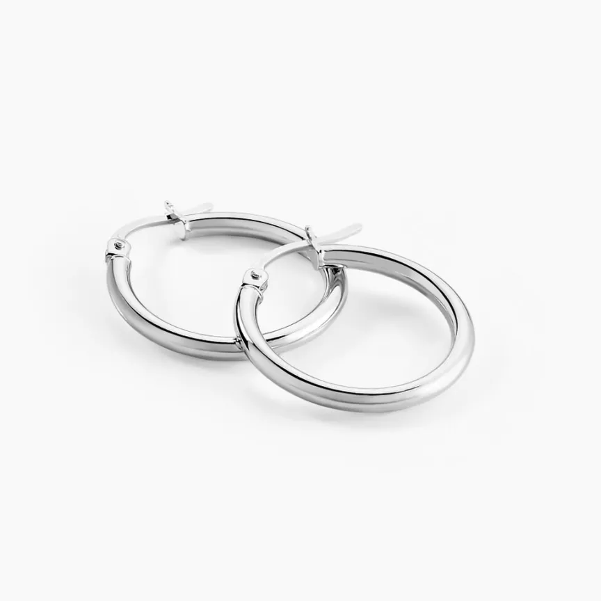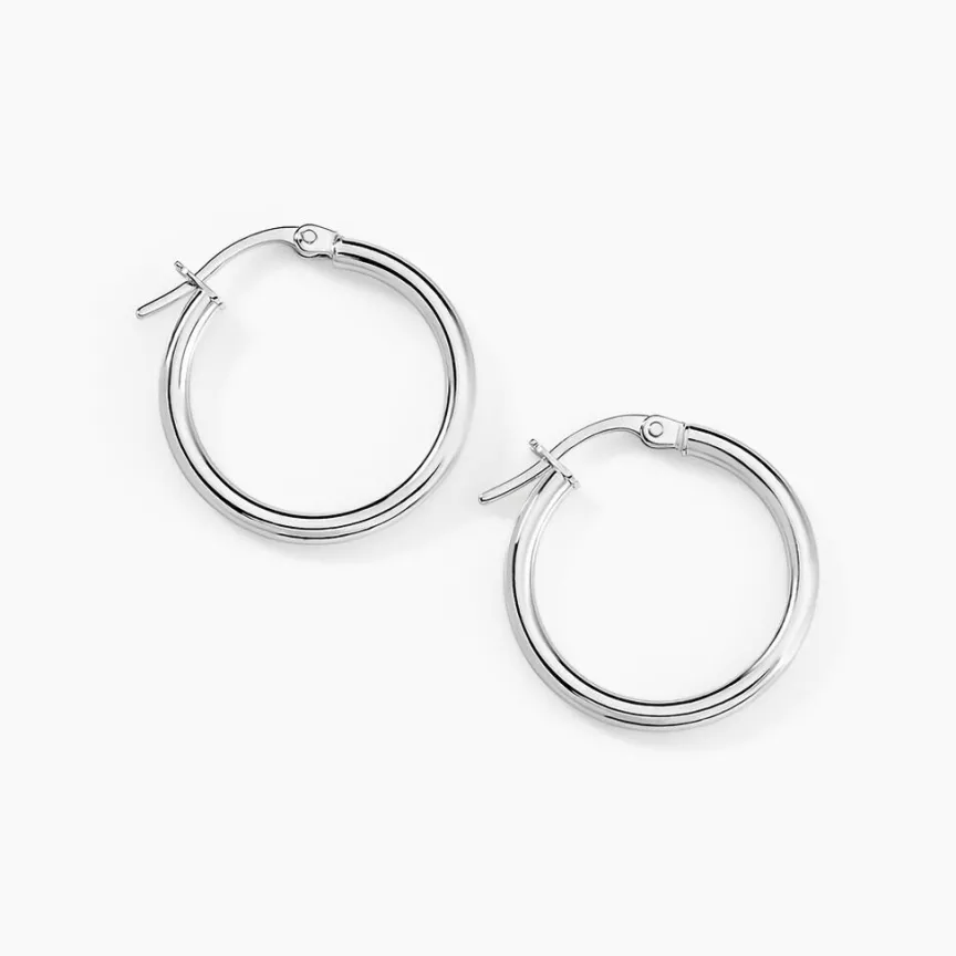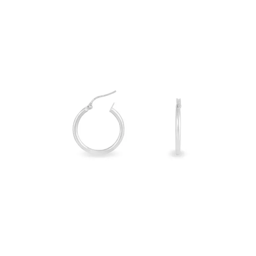 Créoles Or Blanc 375/1000 Fil Rond Lisse Largeur 2mm Diamètre 15mm