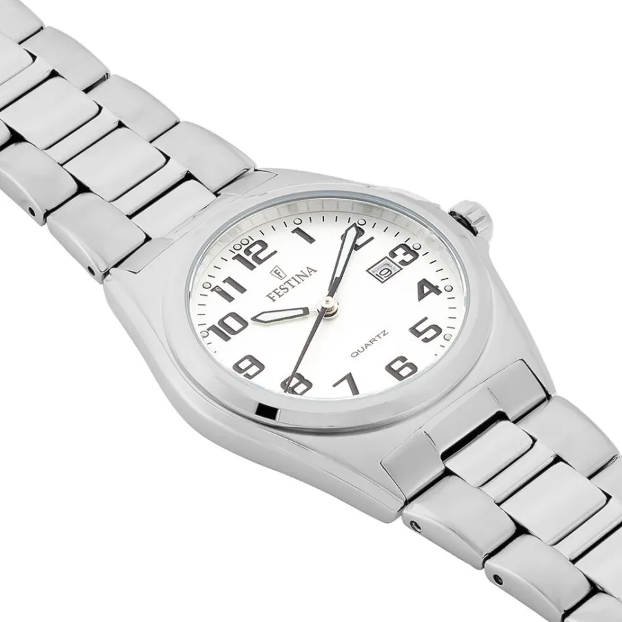 Montre Festina Classics Acier Blanc Ronde Quartz 31mm Fond Blanc Bracelet Acier Blanc F163759