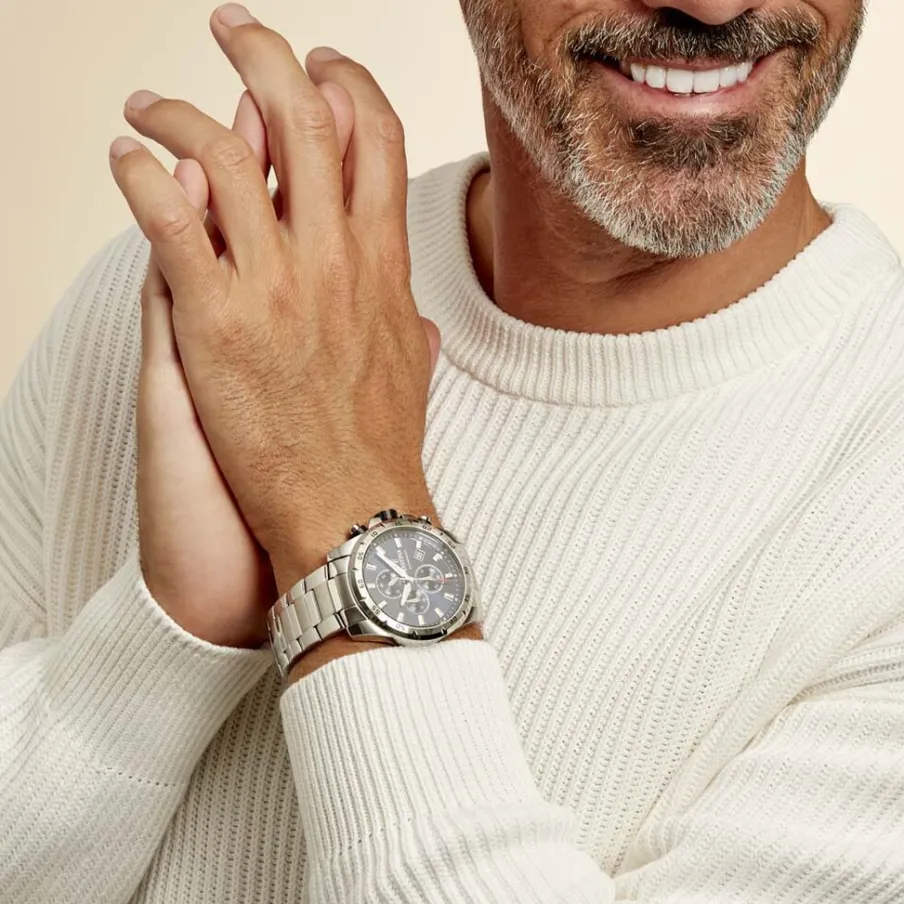 Montre Festina Timeless Chronograph Acier Blanc Ronde Quartz Chronographe 45mm Fond Bleu Bracelet Acier Blanc F20463/2