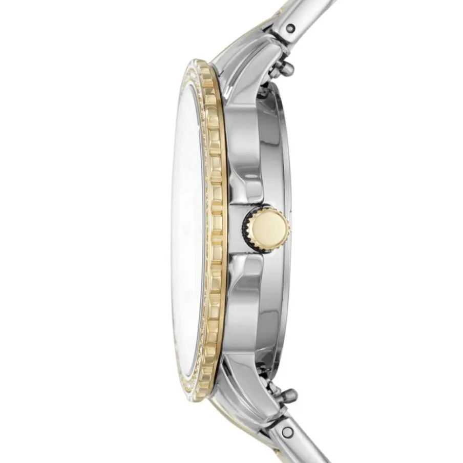 Montre Fossil Izzy Multifunction Acier Argenté Ronde Quartz 36mm Fond Argenté Bracelet Acier Bicolore Argenté/doré Es4784