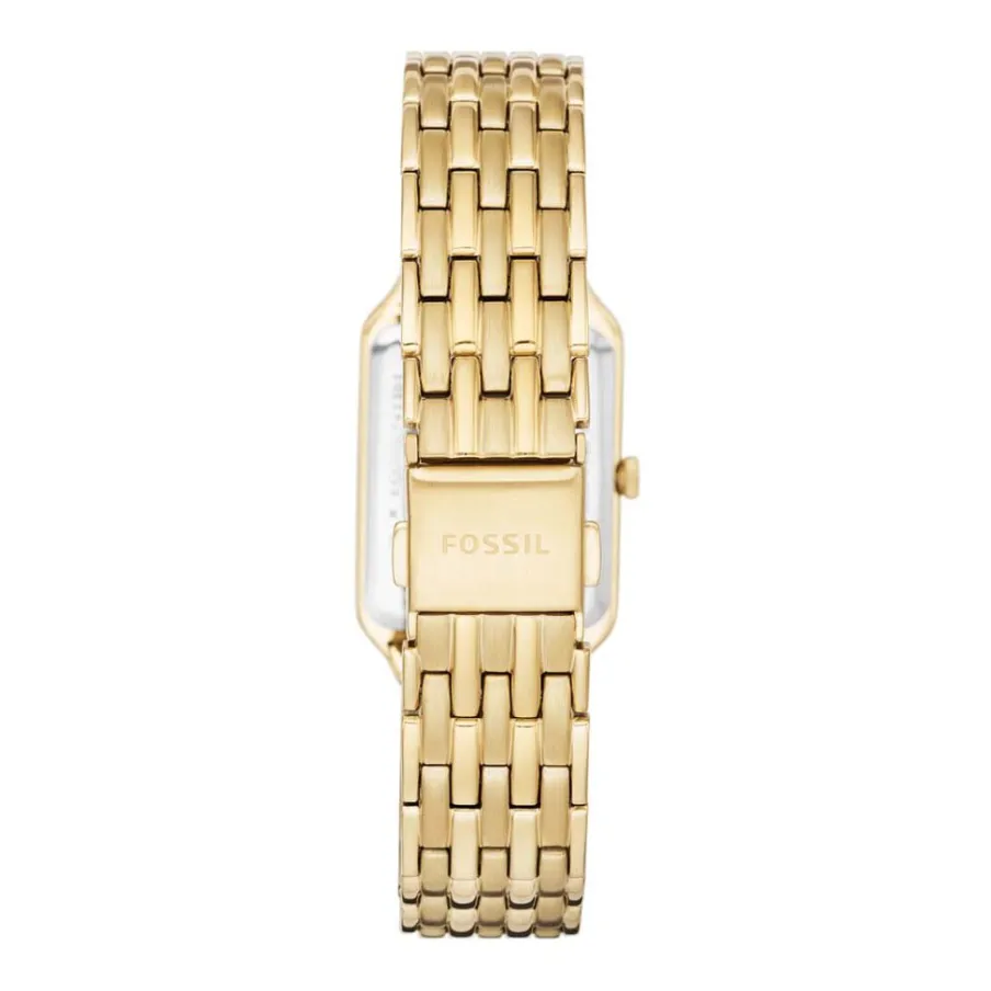 Montre Fossil Raquel Acier Doré Rectangulaire Quartz 23mm Fond Argenté Bracelet Acier Doré Es5220