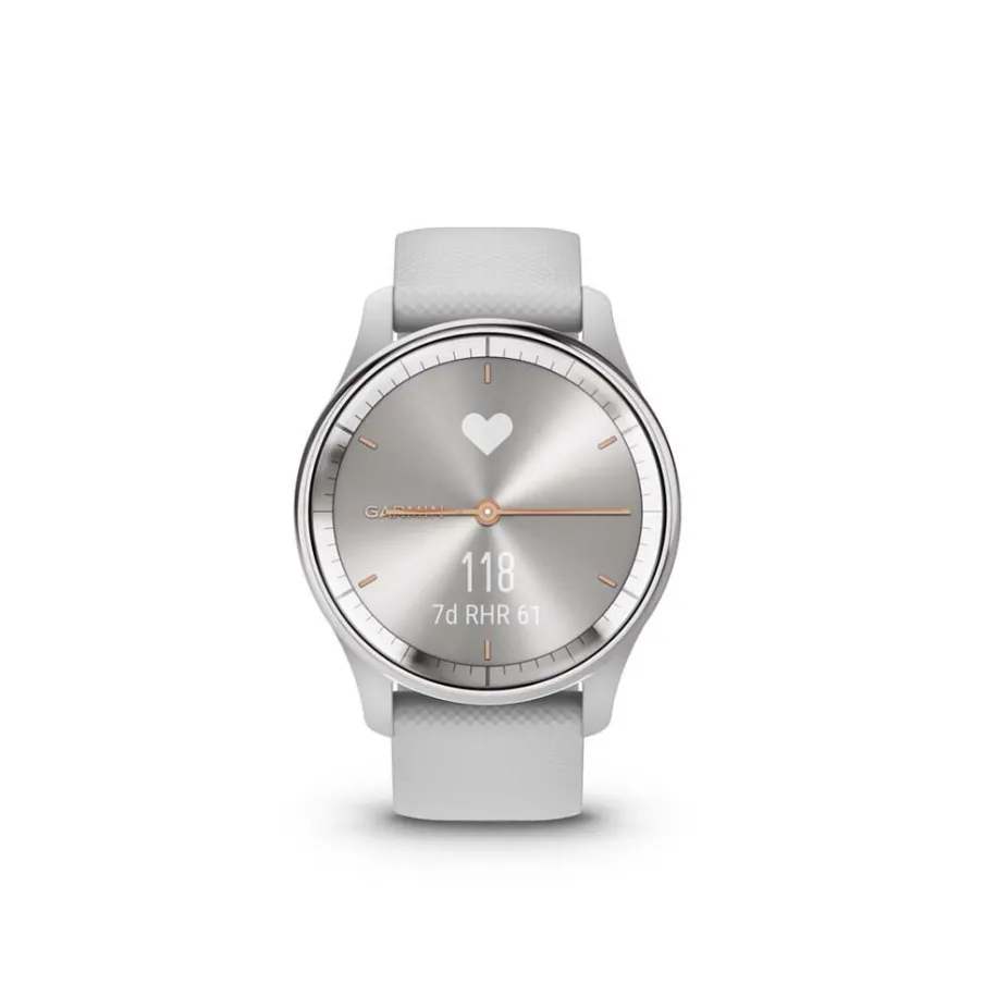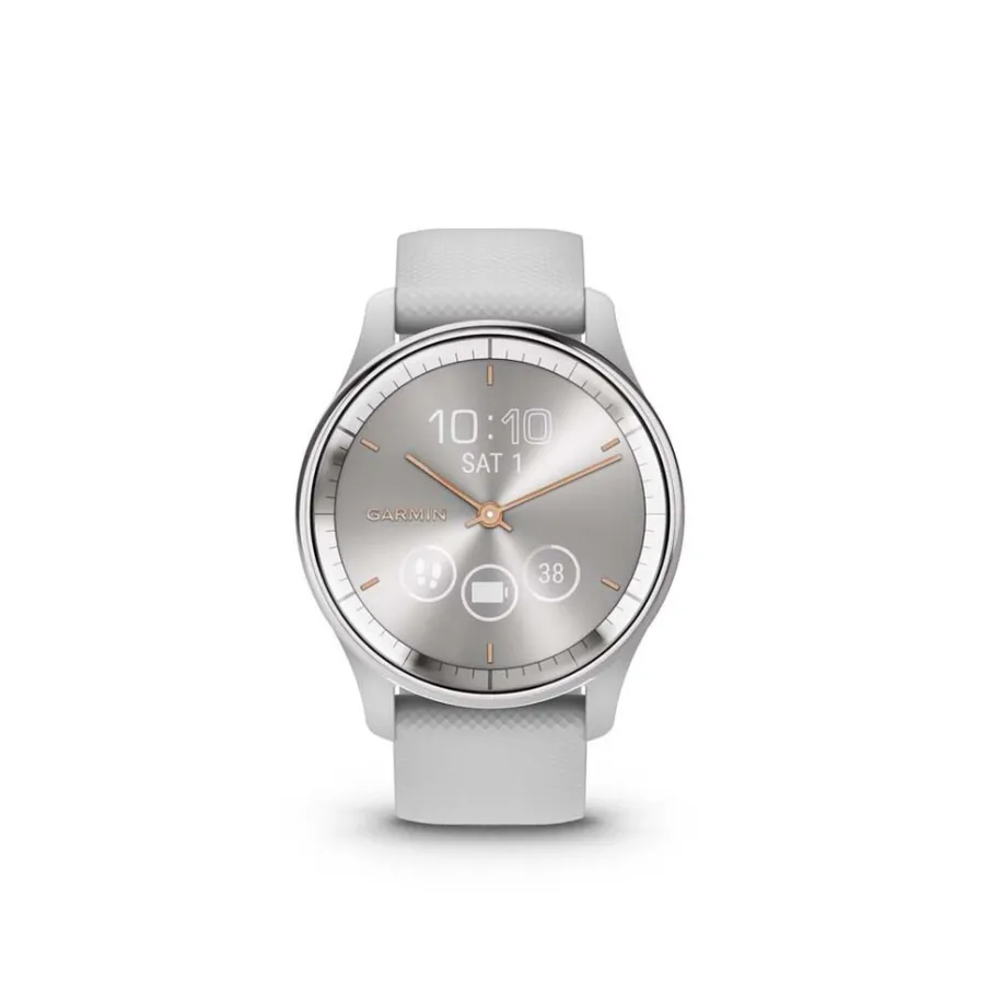 Montre Garmin Vívomove® Trend Acier Argenté Ronde Connectée 40 Mm Fond Personnalisable Bracelet Silicone Gris 010-02665-03