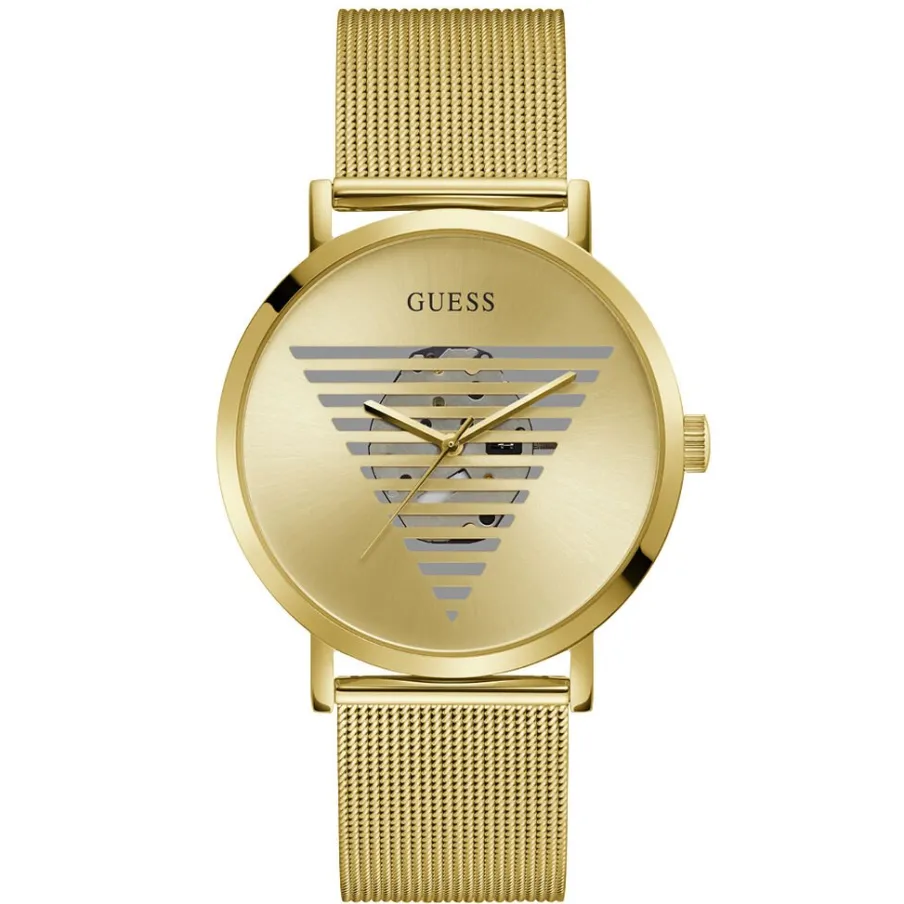 Montre Guess Idol Acier Dore Ronde Quartz 44mm Fond Champagne Motif Bracelet Acier Dore Gw0502g1