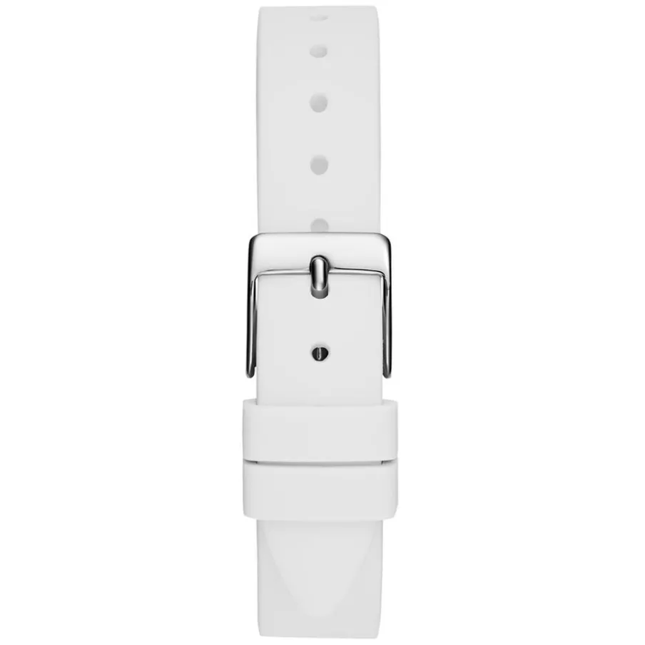 Montre Guess Mini Luna Acier Argenté Ronde Quartz 30mm Lunette Dentelee Fond Argenté Bracelet Blanc Gw0724l1
