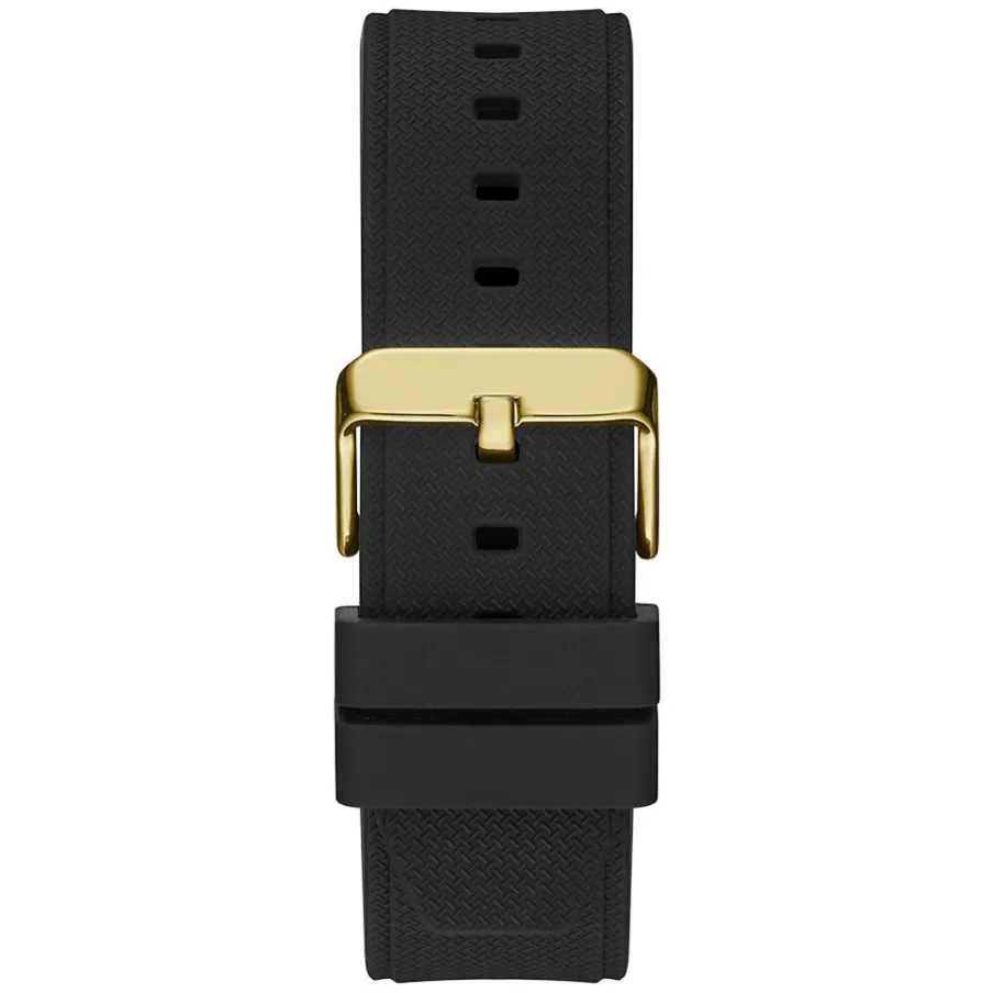 Montre Guess Third Gear Acier Doré Ronde Multifonction 46mm Fond Noir Bracelet Silicone Noir Gw0334g2