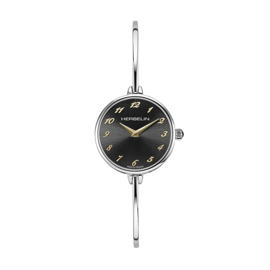 Montre Herbelin Fil Acier Argente Ronde Quartz 26mm Fond Noir Bracelet Acier Argente 17206b24t