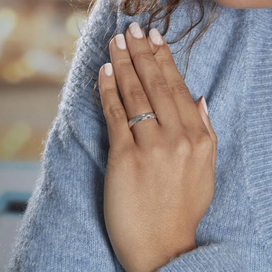 Alliance Or Blanc 375/1000 Fantaisie Motifs Vagues Largeur 4mm