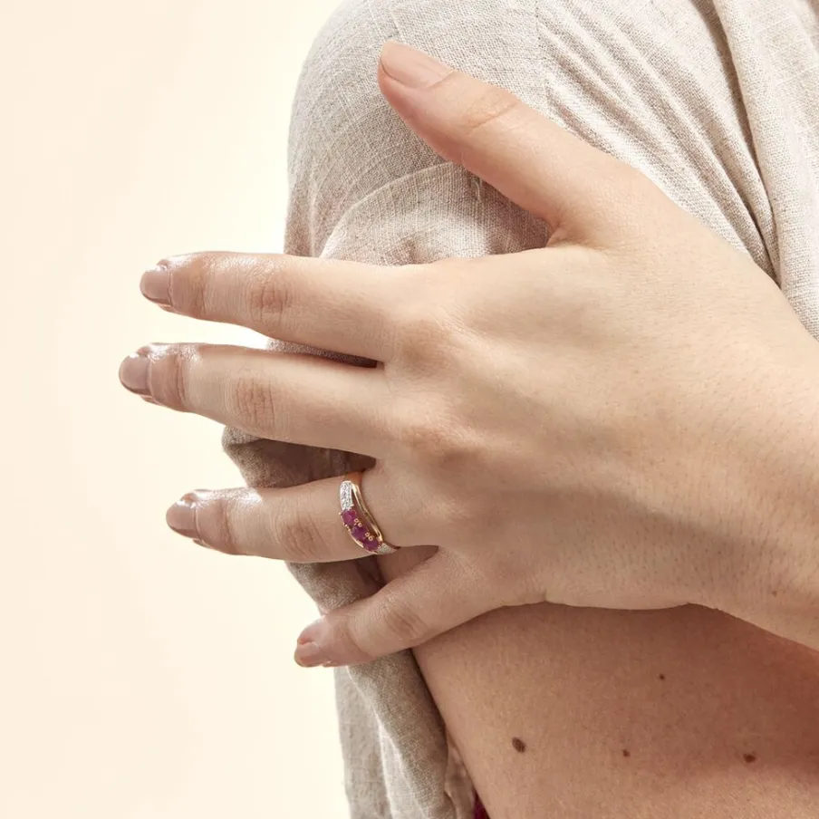 Bague Or Jaune 375/1000 Trilogie Rubis 0.72ct Serti Griffes Et Diamants