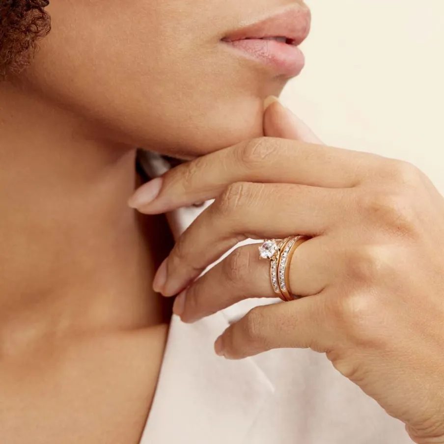 Bague Plaqué Or Jaune 2 Rangs Oxydes De Zirconium + 1 Oxyde De Zirconium