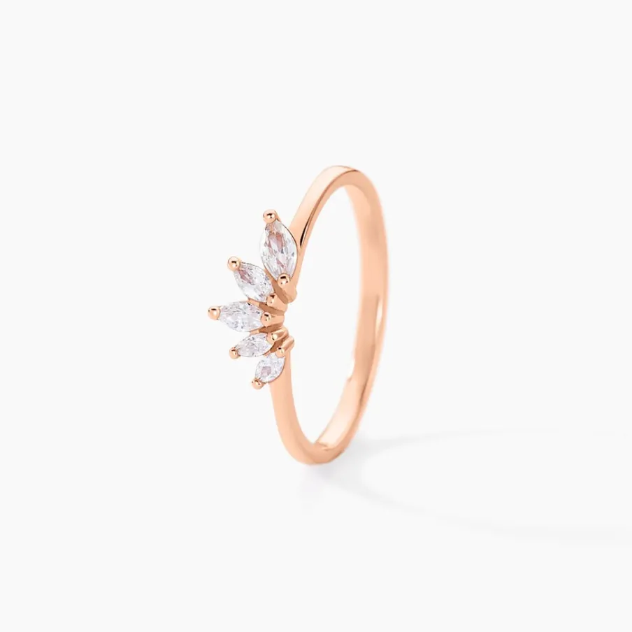 Bague Argent Rose 925/1000 Navettes Oxydes De Zirconium Serti Griffes