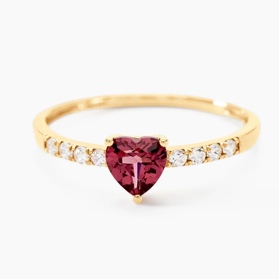 Solitaire Accompagne Or Jaune 375/1000 C艙ur Rhodolite Centrale Serti Griffes Oxydes De Zirconium