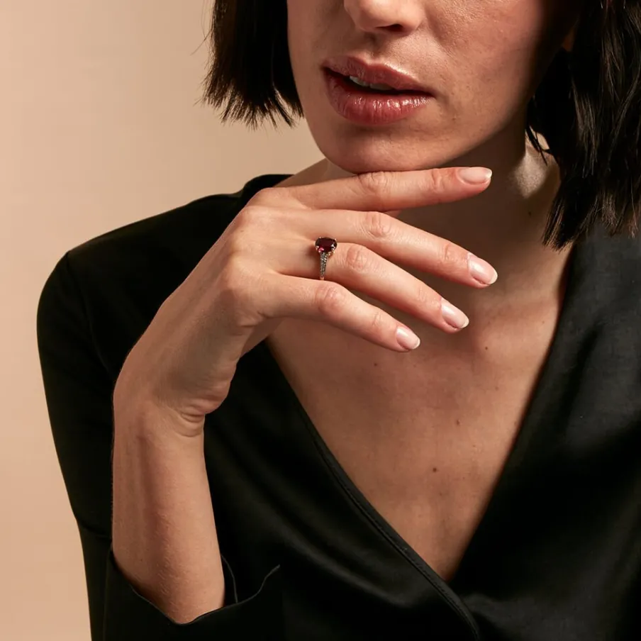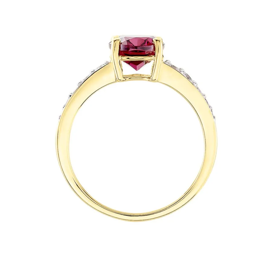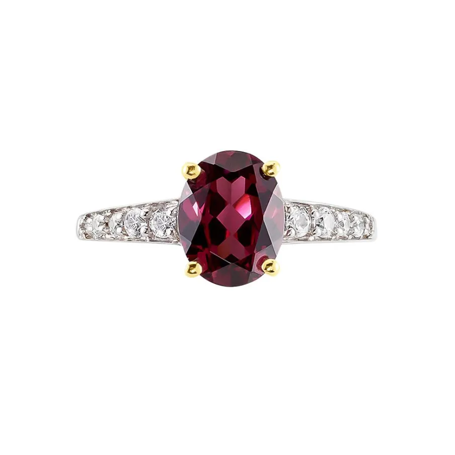 Solitaire Accompagné Or Jaune 375/1000 Ovale Rhodolite Rouge 2.4 Cts Serti 4 Griffes