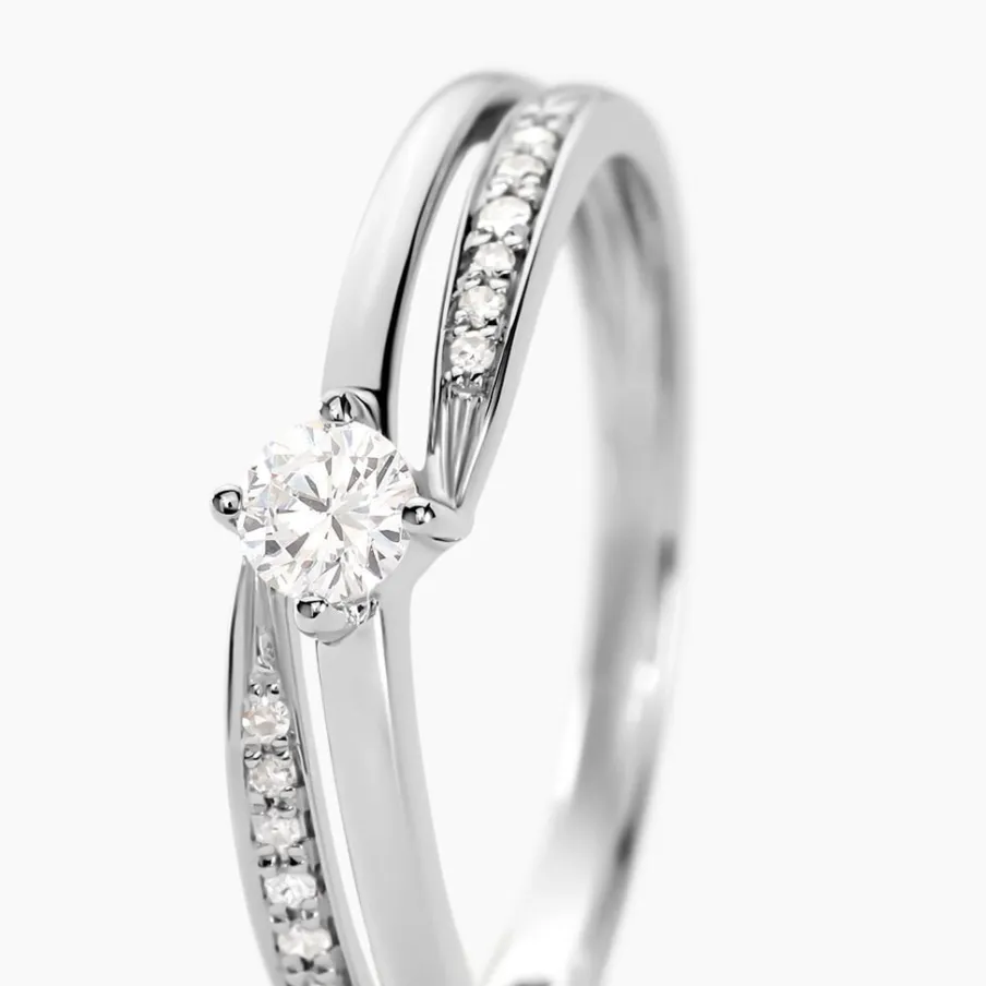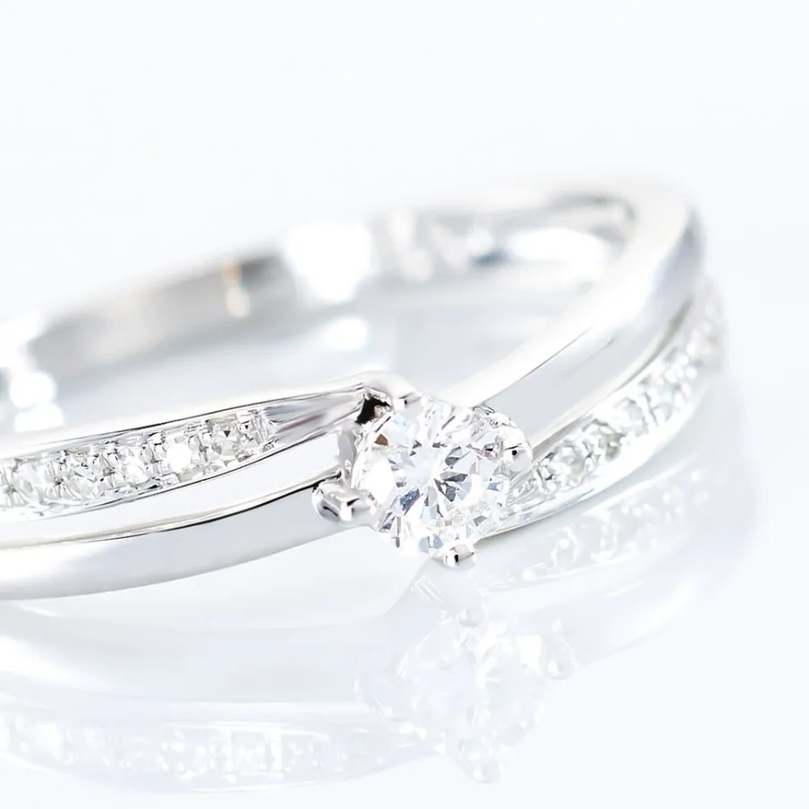 Bague Or Blanc 375/1000 Diamant 0.1cts Central Accompagne Diamants Effet Croise