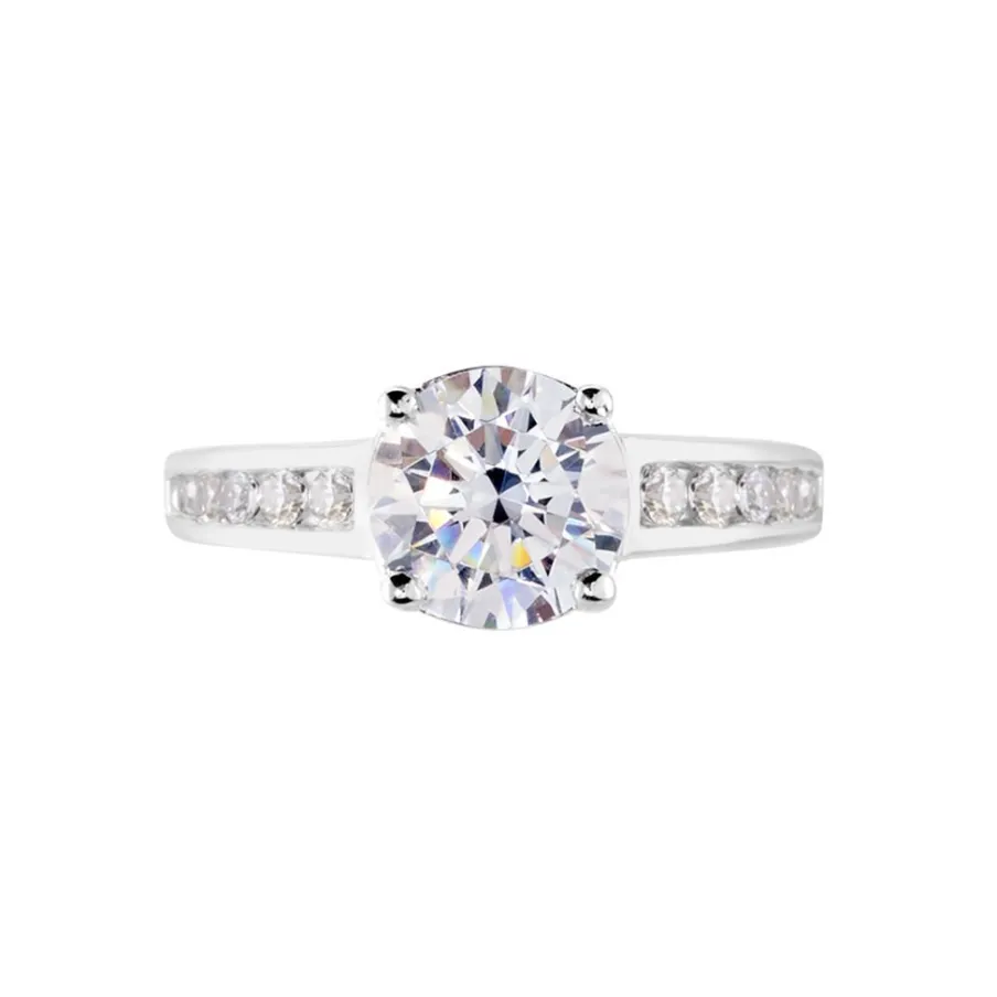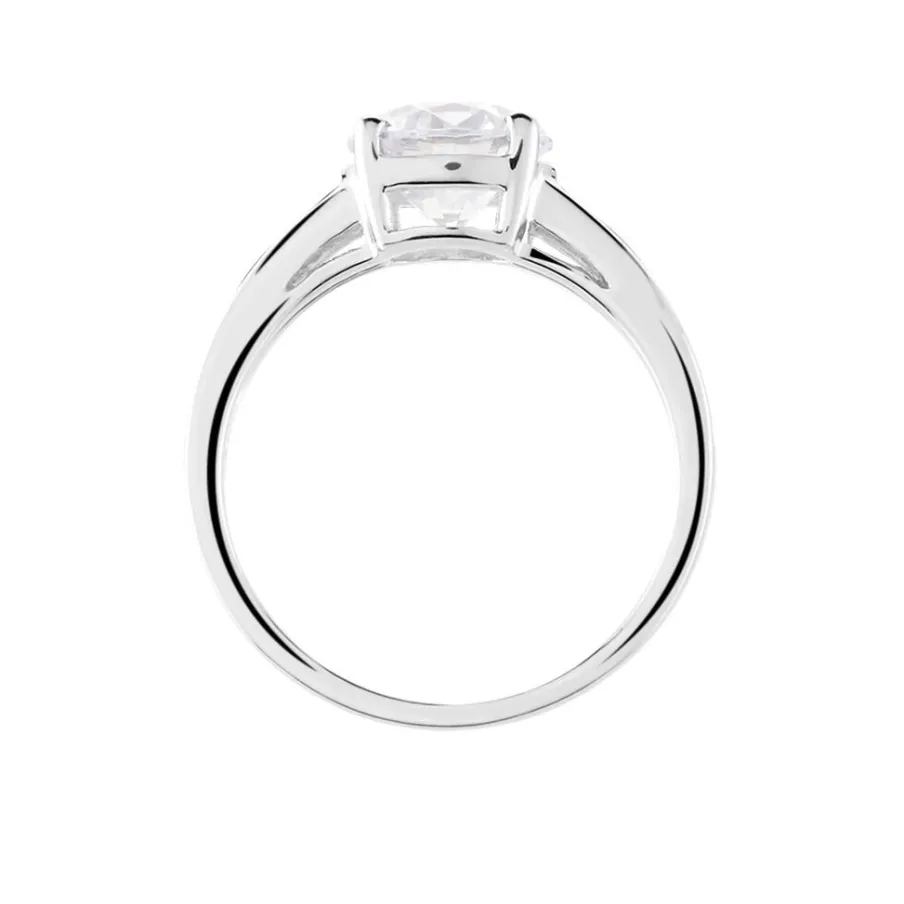Solitaire Or Blanc 375/1000 4 Griffes Corps De Bague Accompagne Oxydes De Zirconium Serti Rail