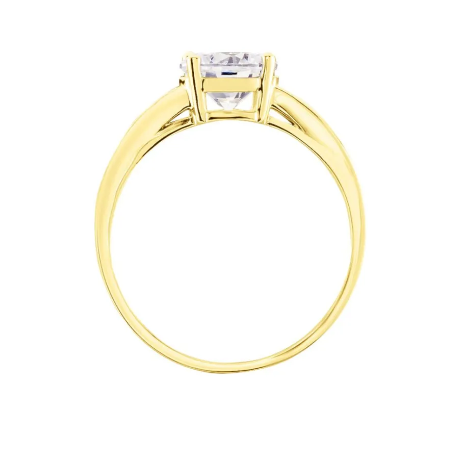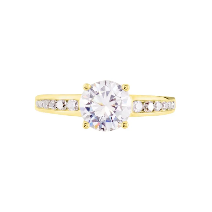 Solitaire Or Jaune 375/1000 4 Griffes Corps De Bague Accompagne Oxydes De Zirconium Serti Rail