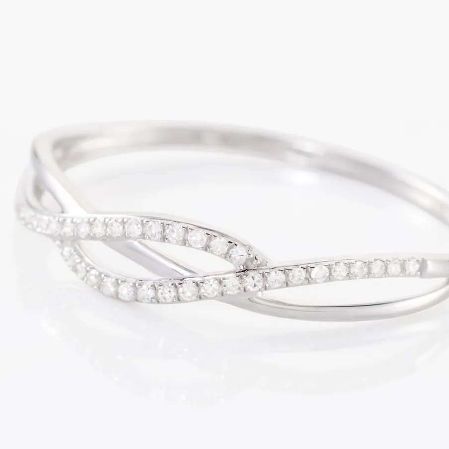 Bague Or Blanc 375/1000 Forme Double Vague Diamant