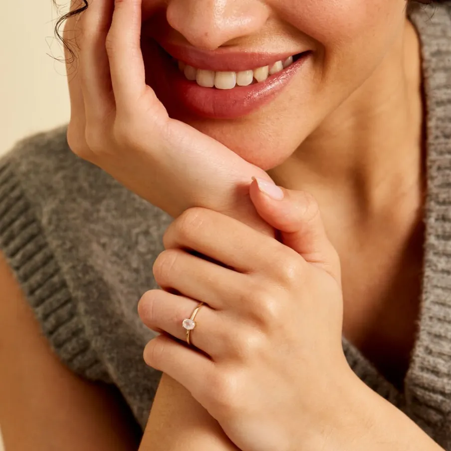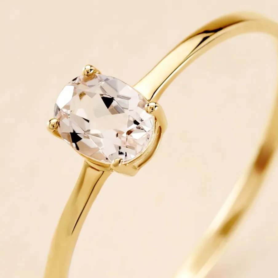 Bague Solitaire Or Jaune 375/1000 Ovale Quartz Rose 0.3cts Serti 4 Griffes