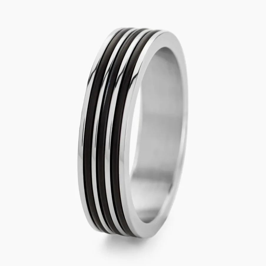 Bague Acier Inoxydable Blanc 3 Bandes Caoutchouc