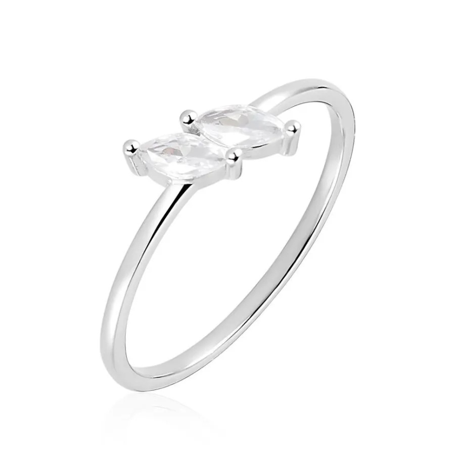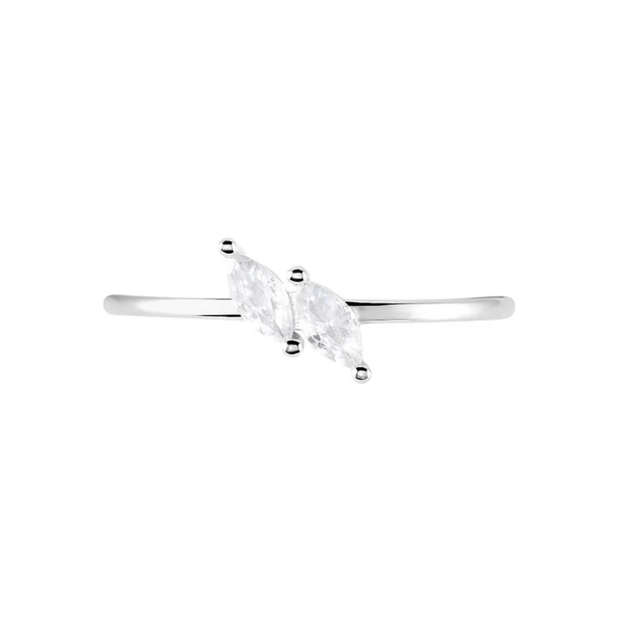 Bague Argent Blanc 925/1000 Oxyde De Zirconium Taille Navette Serti Griffes