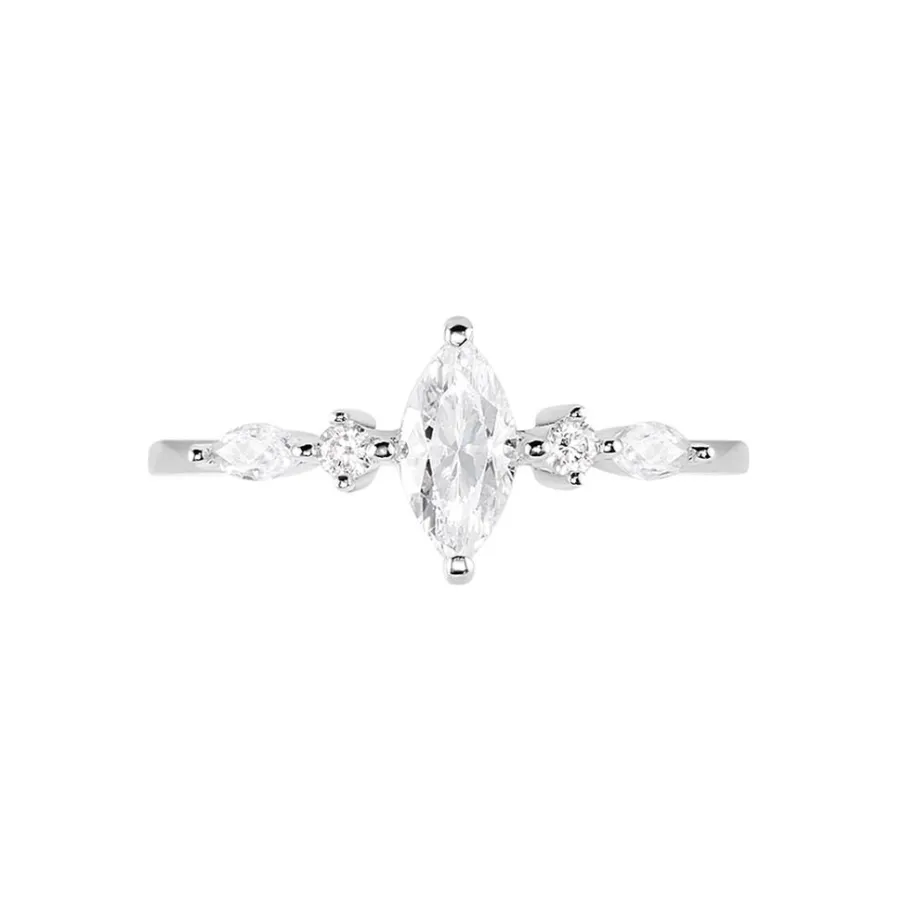Bague Argent Blanc 925/1000 Oxyde De Zirconium Taille Navette Serti Griffes