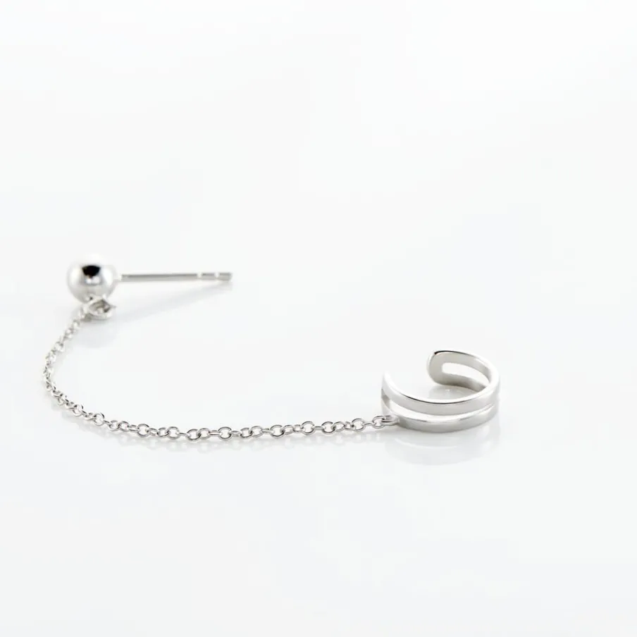 Bijou D’oreille Unitaire Argent Blanc 925/1000 Bague D’oreille Ajustable Et Puce Boule Maille Forcat