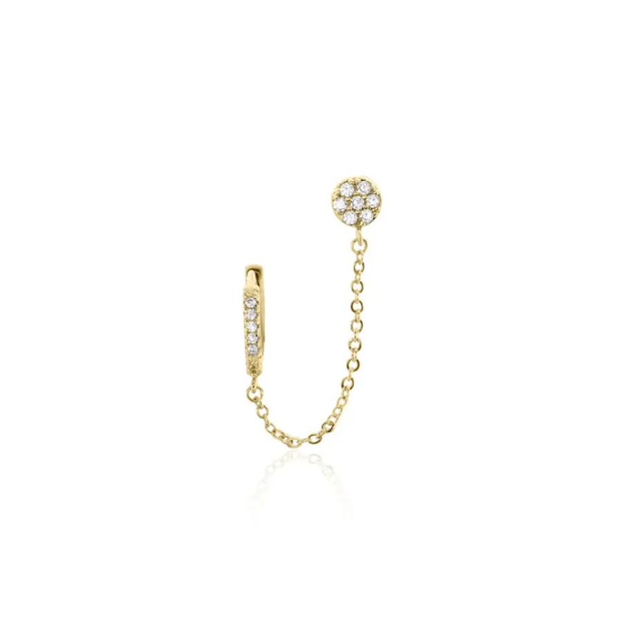 Bijou D’oreille Unitaire Plaqué Or Pastille Et Créole Pavage Oxydes De Zirconium Diamètre 12mm