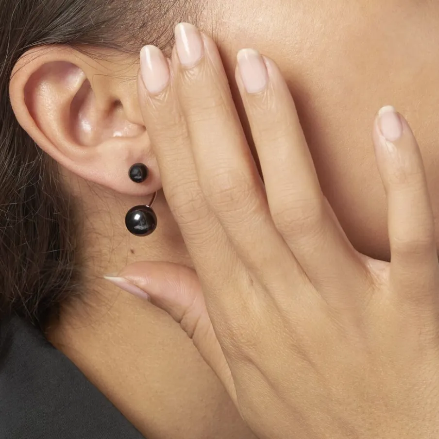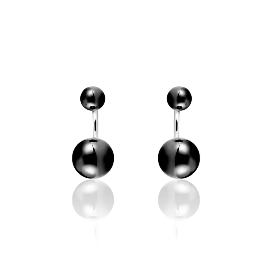 Bijoux D’oreilles Argent Blanc 925/1000 Boules Ceramiques Noires