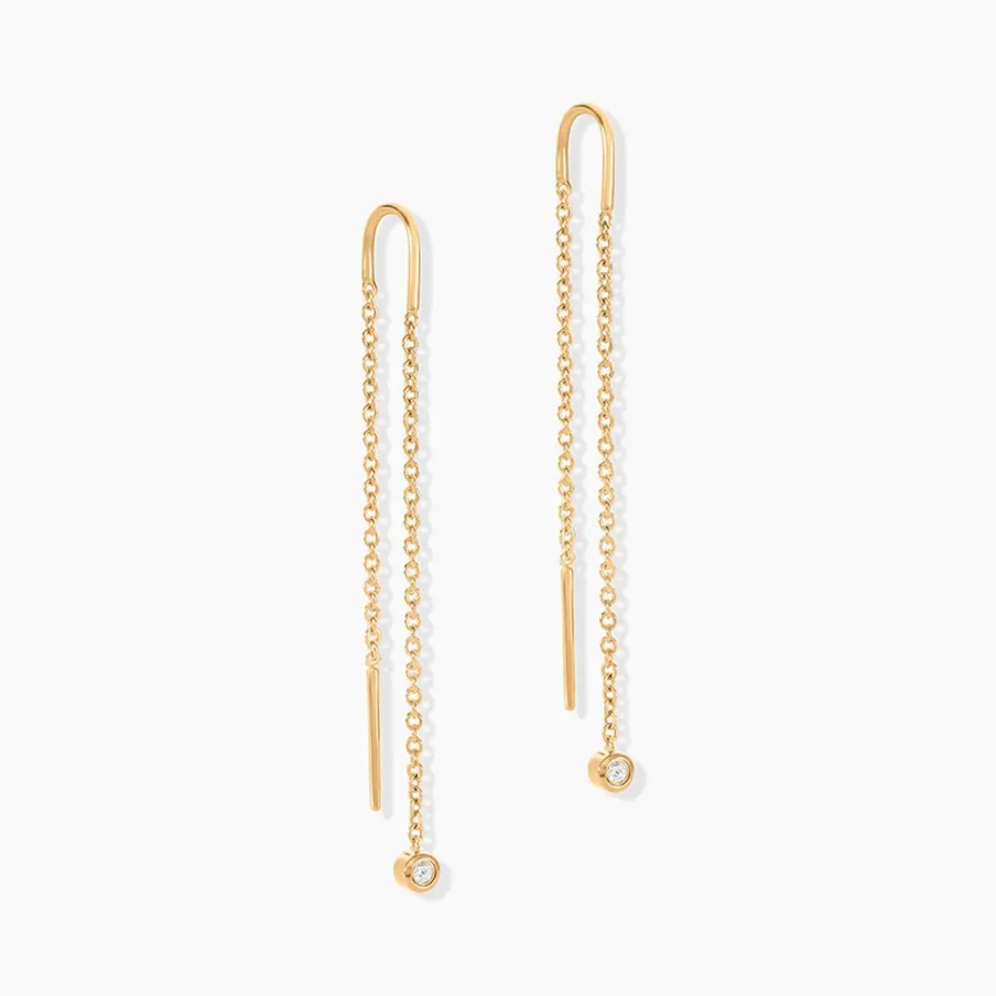 Bijoux D’oreilles Plaqué Or Jaune Double Pendants Motifs Barrettes Et Oxydes De Zirconium Serti Clos Chaîne Forçat