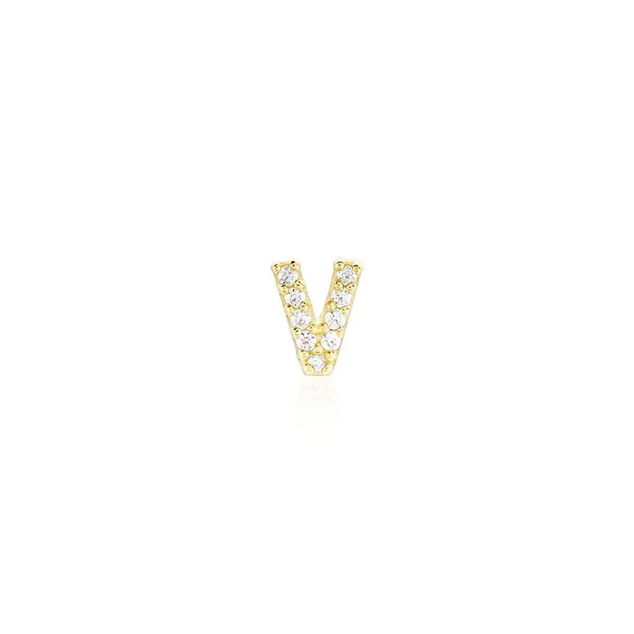 Boucle D’oreille Puce Unitaire Or Jaune 375/1000 Lettre Y Oxydes De Zirconium