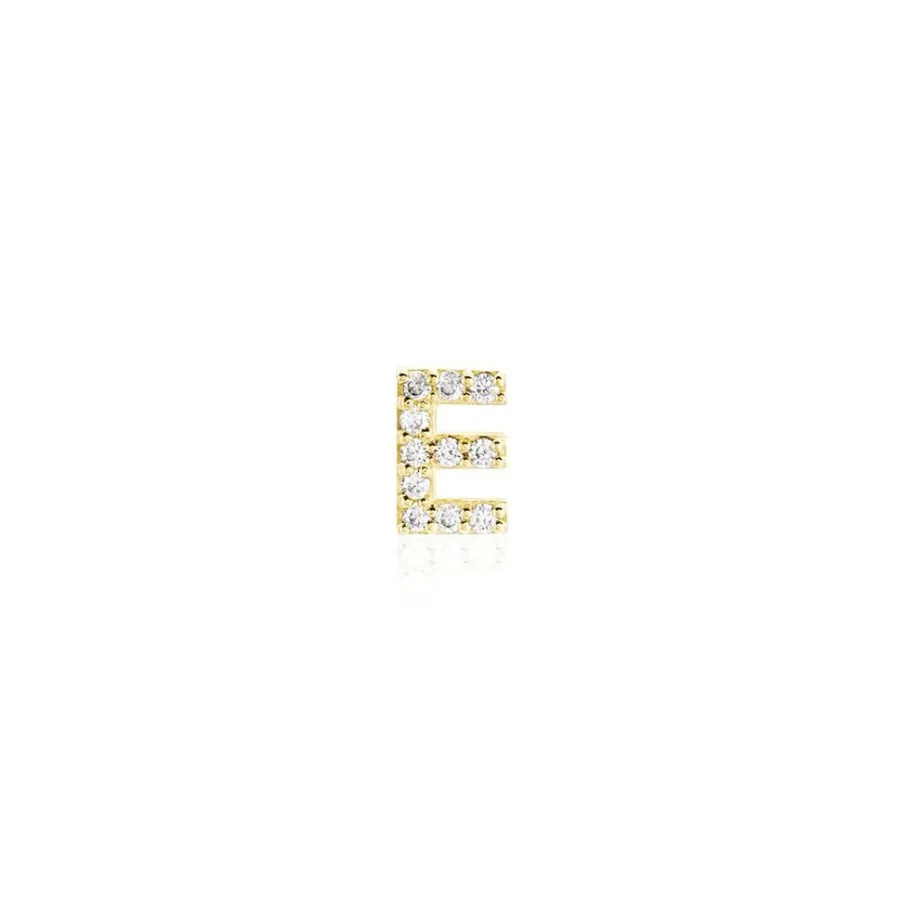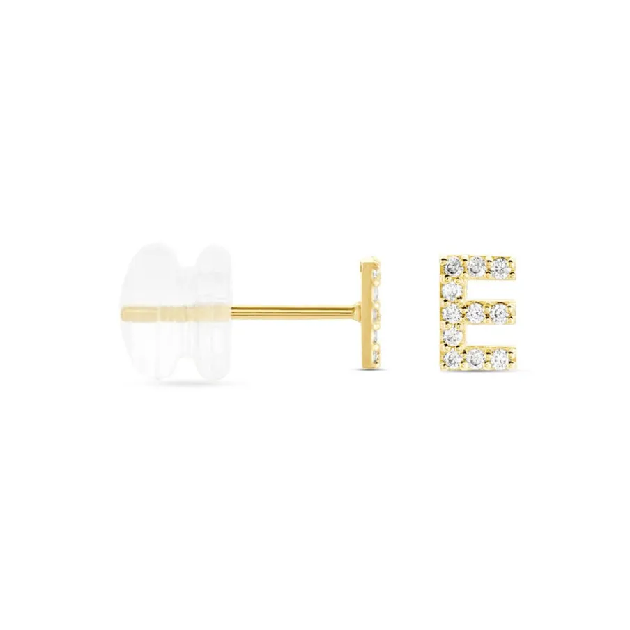 Boucle D’oreille Puce Unitaire Or Jaune 375/1000 Lettre E Oxydes De Zirconium