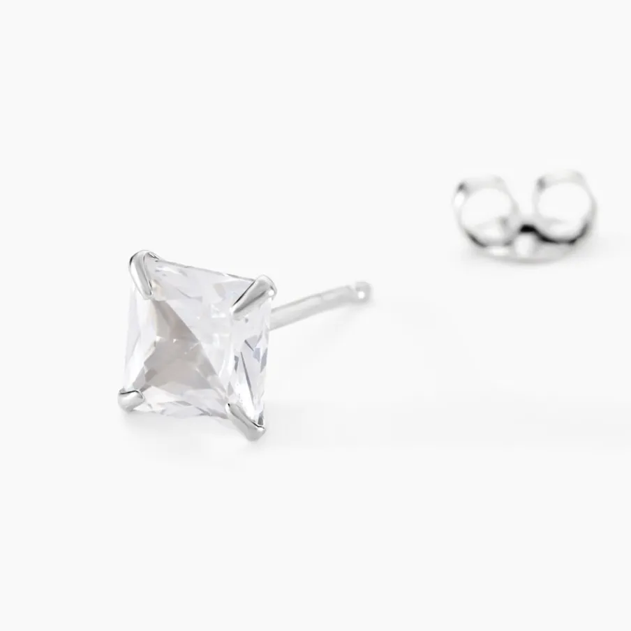 Boucle D’oreille Puce Unitaire Argent Blanc 925/1000 Oxyde De Zirconium Carré 4 Griffes 6mm