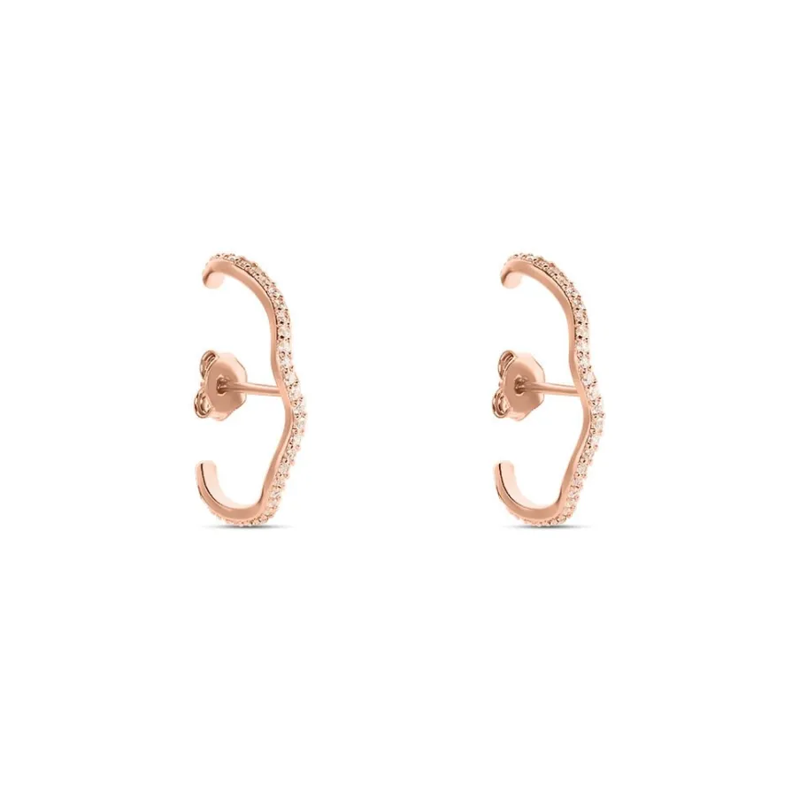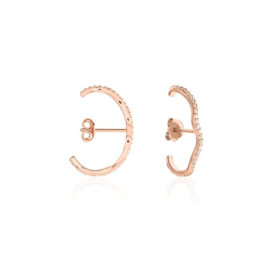 Boucles D’oreilles Argent Rose 925/1000 Effet Manchettes De Lobe Pavage Oxydes De Zirconium 21.7mm