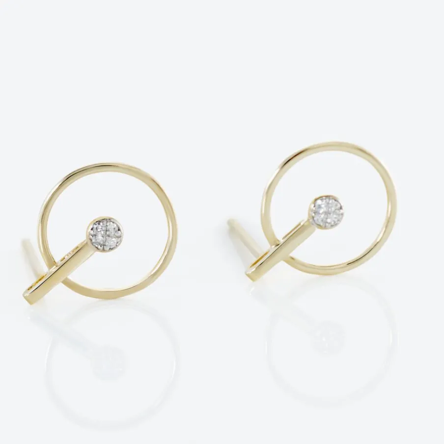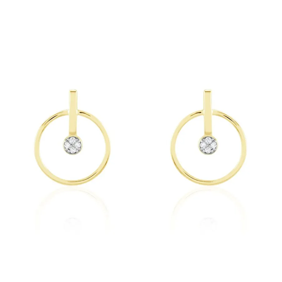 Boucles D’oreilles Or Jaune 375/1000 Motifs Cercles Ronds Diamants